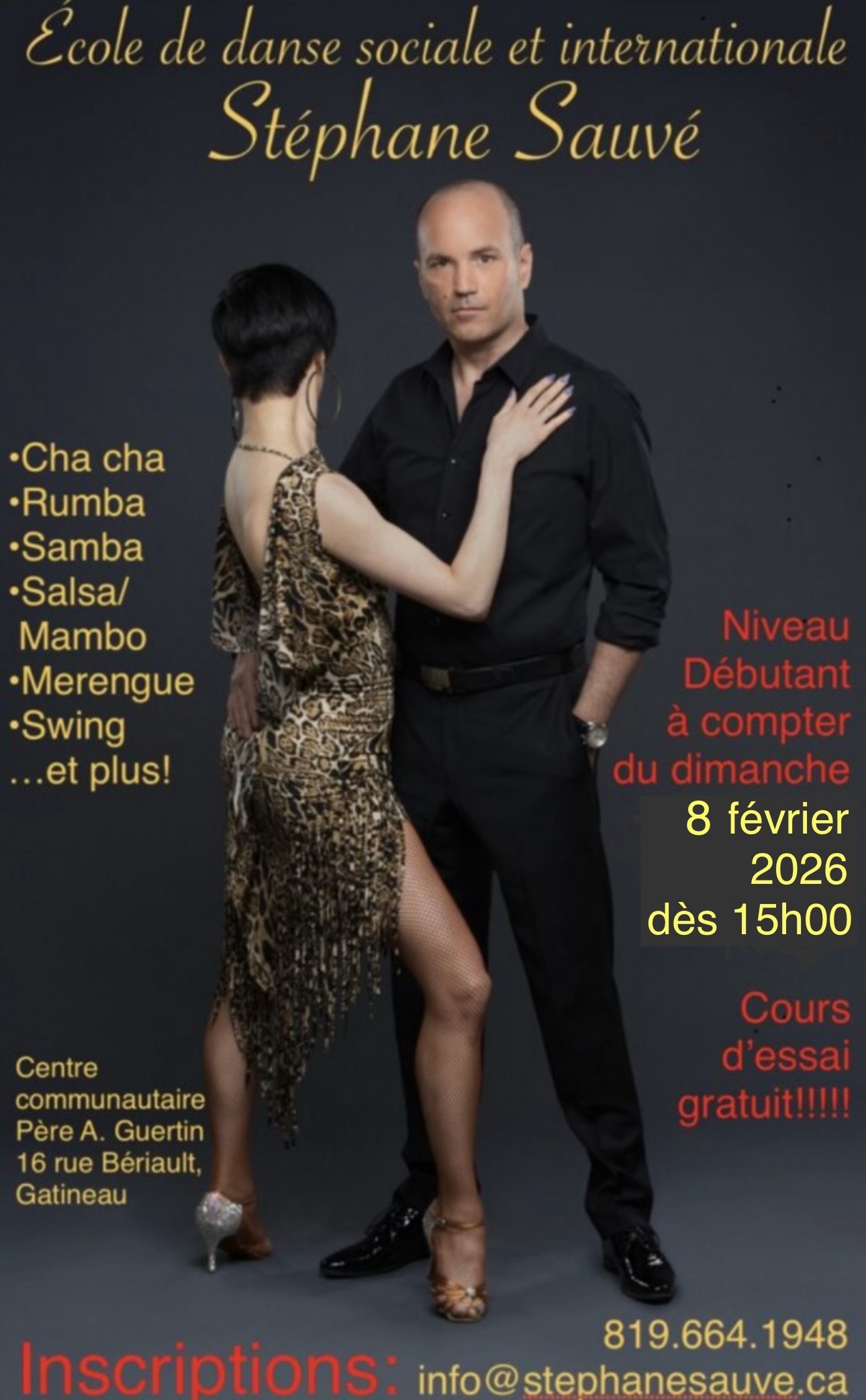 Salsa, Merengue, Cha-Cha, Rumba,Triple Swing, Samba, Mambo, Jive et plus encore.